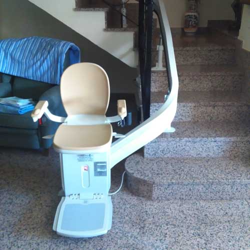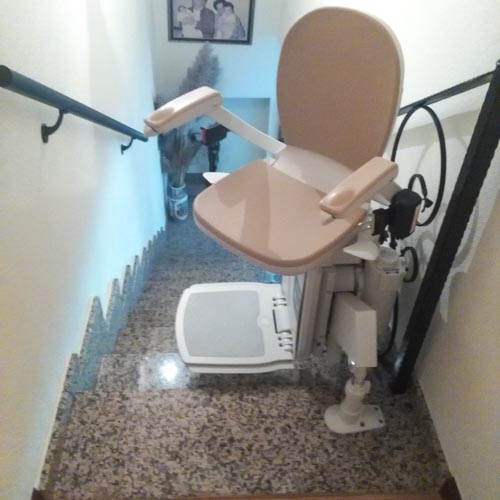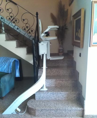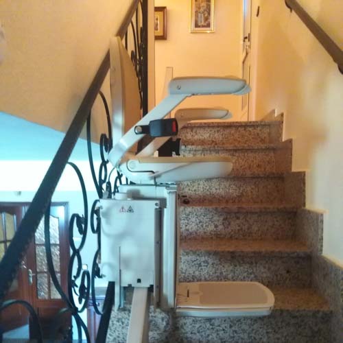 Esta silla supera una escalera curva que lleva de la planta baja al primer piso de la casa afrontando un tramo estrecho de escalera sin problemas. Gracias a esta silla el cliente puede subir y bajar de su casa libremente y hacer sus tareas con total seguridad y autonomía haciendo un trayecto seguro donde antes era un verdadero desafío.