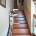 Silla salvaescaleras modelo Acorn recta ubicada en el interior de una vivienda en Chinchon una población que se encuentra en la comunidad de Madrid.