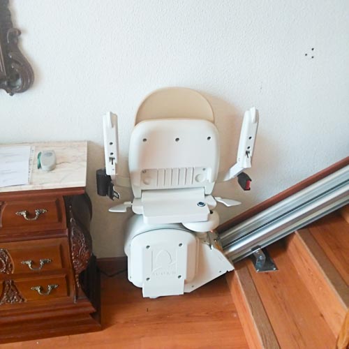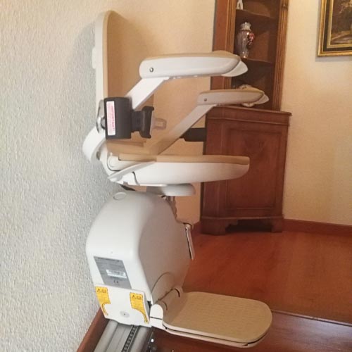 Silla salvaescaleras modelo Acorn recta ubicada en el interior de una vivienda en Chinchon una población que se encuentra en la comunidad de Madrid.
