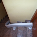 Este modelo Acorn Curve supera con facilidad una escalera curva muy estrecha. Instalada en la parte izquierda para poder salvar un pilar que encontramos a mano derecha. Su aparcamiento tanto superior como inferior se acopla perfectamente a la pared con su plegado extraplano cuando se encuentra en reposo, para tener el máximo espacio libre y no interrumpir el paso de la puerta y asegurar el paso de otros miembros del hogar sin obstáculos.