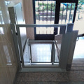 En esta comunidad de vecinos hemos instalado una plataforma de elevación vertical superando unos pocos escalones que separan el nivel de la calle a la zona del ascensor.