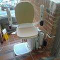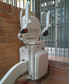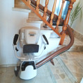Esta silla transporta al usuario desde la planta baja hasta la primera planta de la casa. Cuenta con las mejores medidas de seguridad, como cinturón de seguridad retráctil y sensores que detienen la maquina cuando encuentran algún obstáculo.
