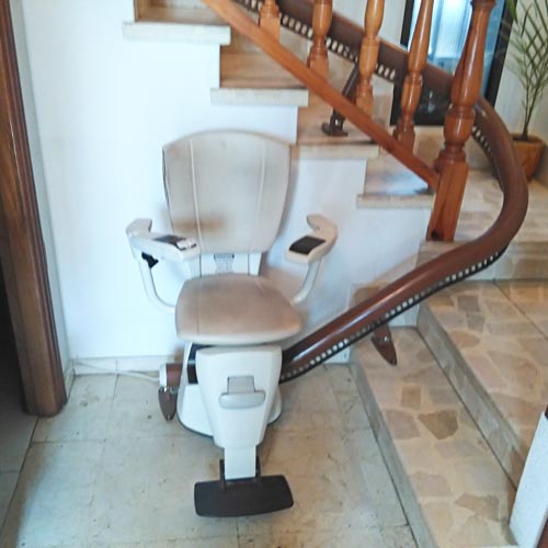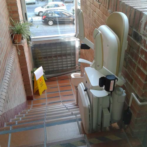 Esta silla transporta al usuario desde la planta baja hasta la primera planta de la casa. Cuenta con las mejores medidas de seguridad, como cinturón de seguridad retráctil y sensores que detienen la maquina cuando encuentran algún obstáculo.