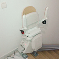 Esta silla afronta un tramo recto de escalera, pasando de un piso a otro con total seguridad, proporcionado al usuario un viaje cómodo y suave solo manteniendo apretado un botón.