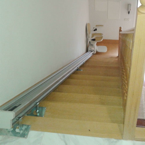 Esta silla afronta un tramo recto de escalera, pasando de un piso a otro con total seguridad, proporcionado al usuario un viaje cómodo y suave solo manteniendo apretado un botón.