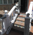 Esta silla esta concebida para salvar todo tipo de barreras arquitectónicas. En este caso, la silla tiene que salvar unos pocos escalones que separan la entrada principal de la casa, es un pequeño desnivel pero una muralla para personas mayores o con movilidad reducida.