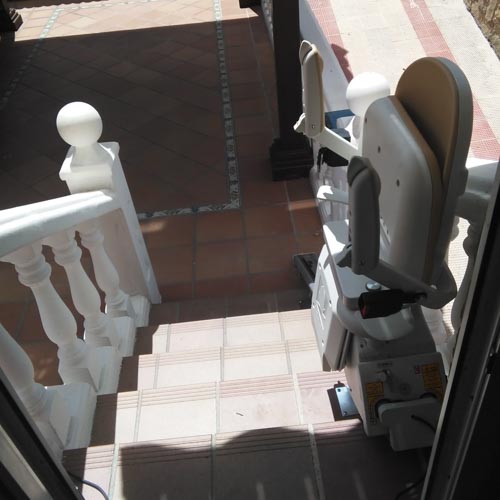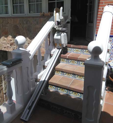 Silla salvaescaleras Acorn exterior montada en un chalet en Getafe una población que se encuentra al sur de la Comunidad de Madrid.