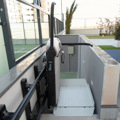 Esta plataforma recorre un tramo recto de escalera para dar acceso a los usuarios con silla de ruedas a la zona del la pista de padel. Haciendo un edificio accesible para todos los usuarios, y así, puedan disfrutar de las zonas comunes de una forma libre, autónoma y segura.