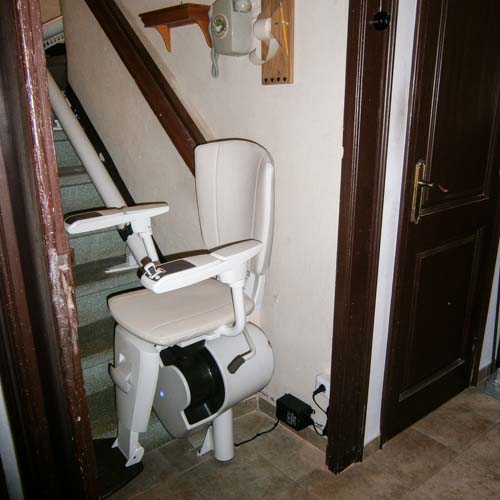 Silla salvaescaleras modelo Flow2 instalada en el interior de una casa en Loeches un municipio que pertenece a la Comunidad de Madrid.