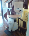 En esta instalación la silla nos transporta desde la planta baja hasta el primer piso, en una escalera estrecha y con cambios de pendiente.