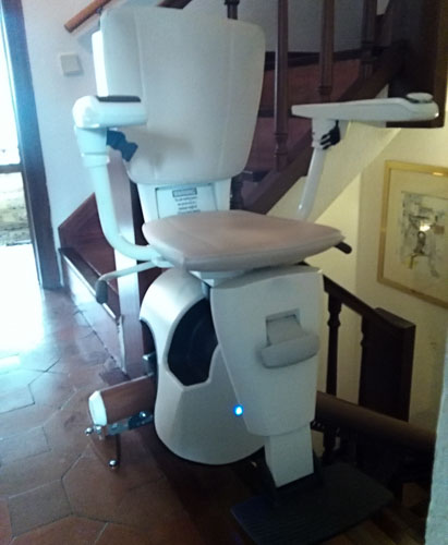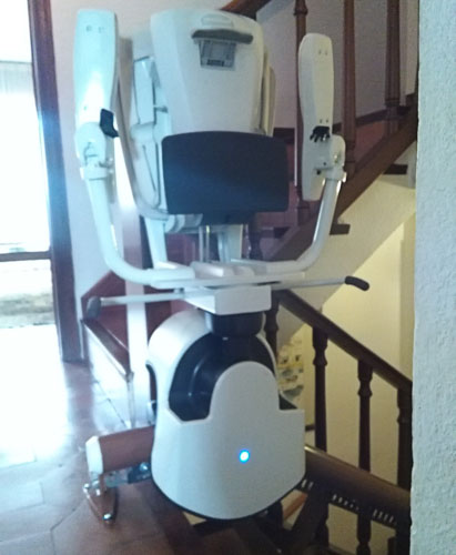En esta instalación la silla nos transporta desde la planta baja hasta el primer piso, en una escalera estrecha y con cambios de pendiente.