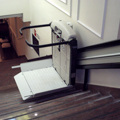 Esta plataforma tiene que salvar una escalera recta que conecta un salón con otro del piso superior. Esta plataforma es la solución perfecta para cumplir con la normativa de accesibilidad a lugares públicos, ya que no se necesita obras ni cambios estructurales de la escalera y está montada en poco tiempo, su calidad-precio es excepcional.
