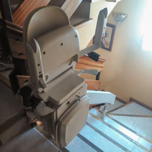 Silla salvaescaleras instalada en el interior de una casa unifamiliar en el municipio de Valemoro (Madrid).